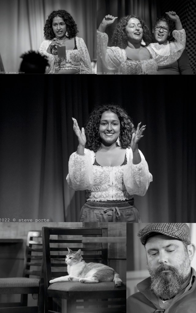 Courtesy of Steve Porte, some images from last Thursday, a night of theatrical poetry with Nupur Saraswat, aka The Sanskari Girl, from India/Singapore, an Apple Tree Productions International event in conjunction with SpeakEasy Theatre at The Box Office.