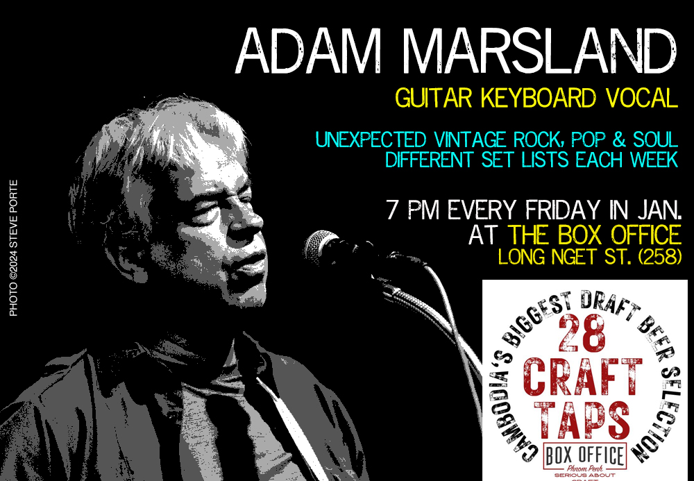 On Friday 21 at Tacos Kokopelli a similar event of art inspired by Kak Channthy, featuring photography, music, and paintings by David Roberts. “A musical journey that took them from a first gig at the Alley Cat Cafe, now Tacos Kokopelli, on to tour Asia, Europe, America, and Australia in between bouts of touring the Kingdom, and collaborating with artists near and far.” From 7 pm, until April 3.