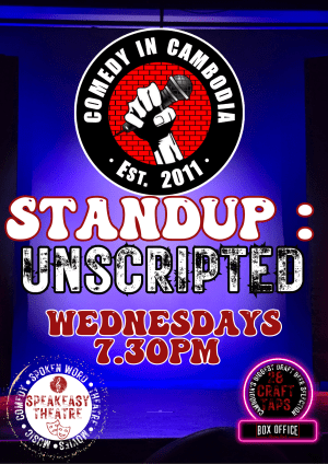 Wednesday 19, Comedy in Cambodia presents Stand-Up Unscripted at Speak Easy Theater/The Box Office. From 7.30 pm.